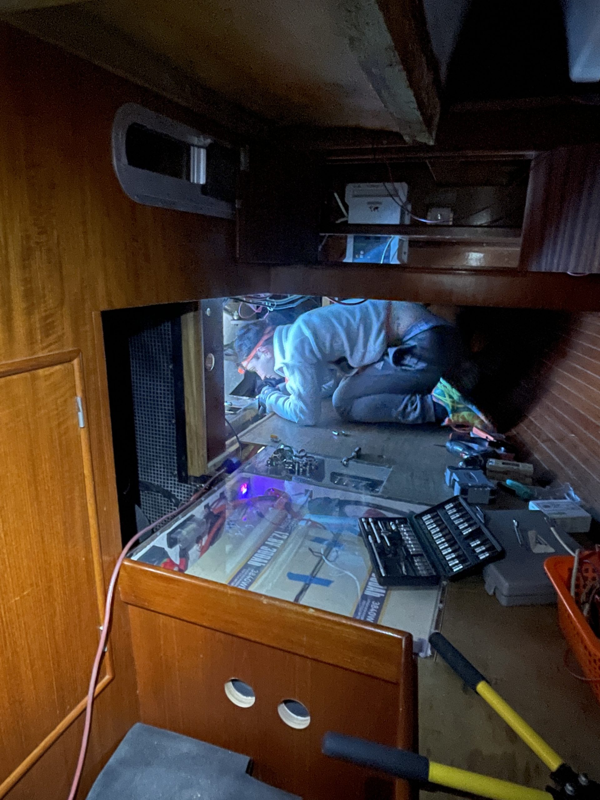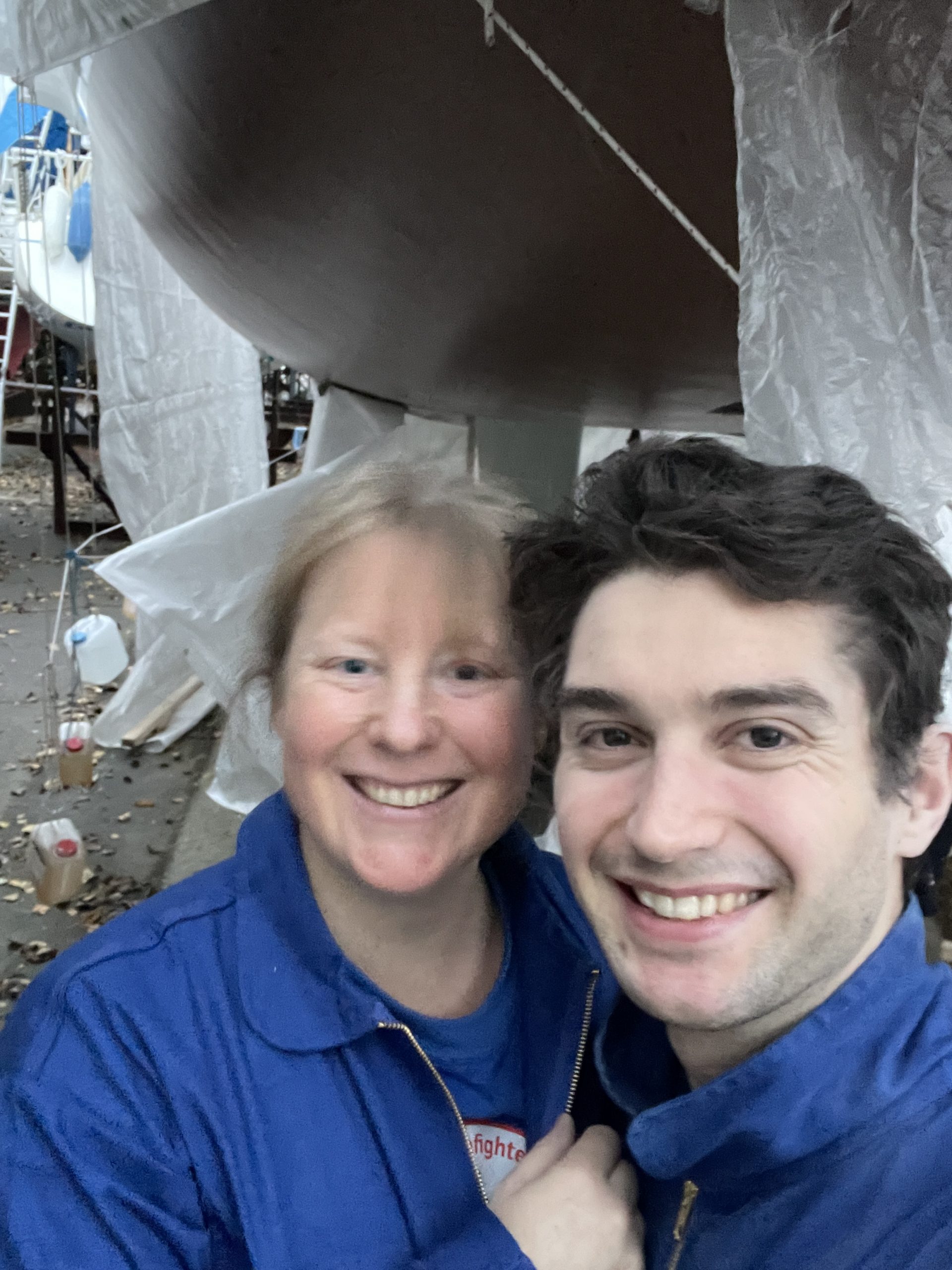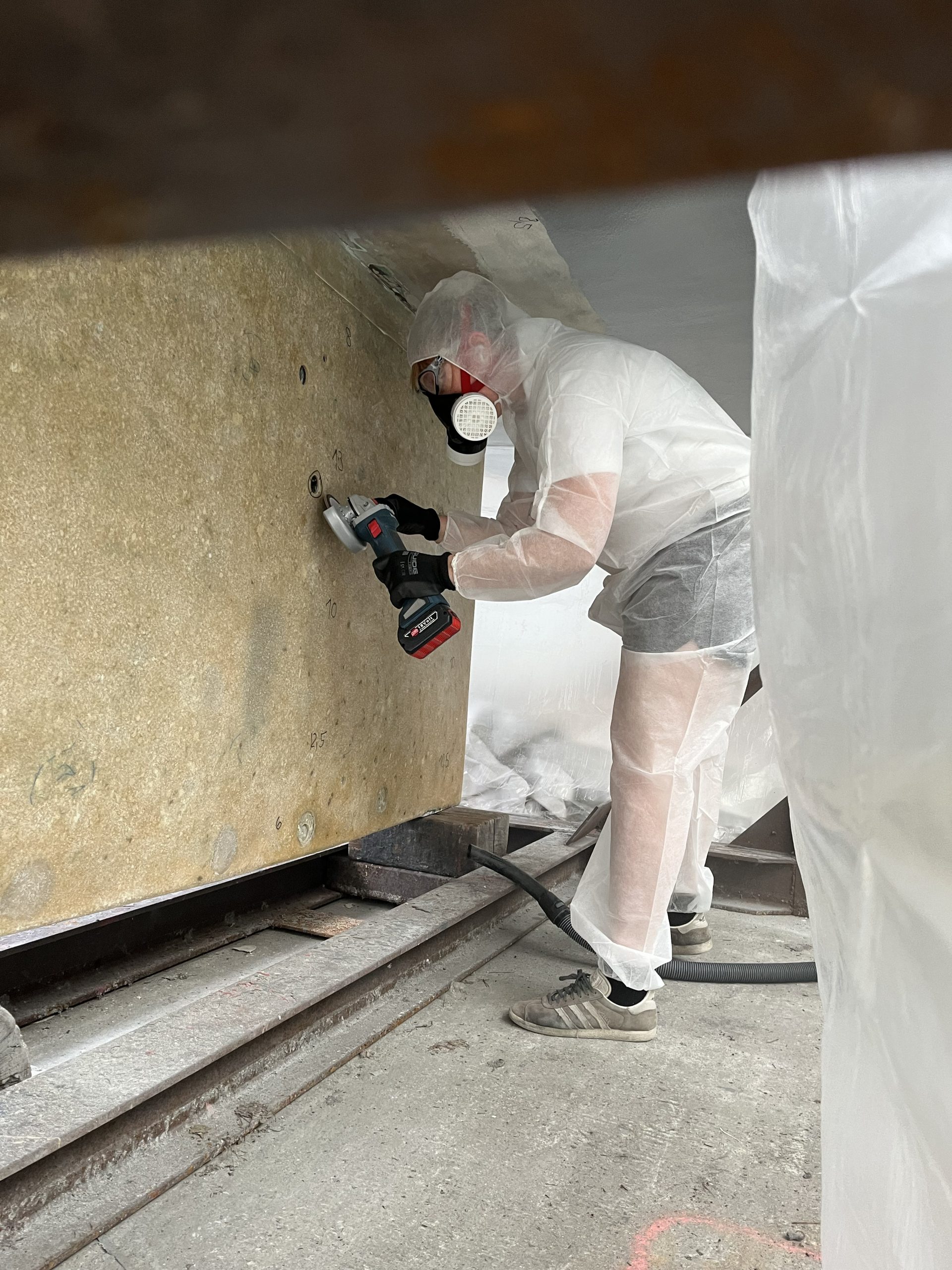 Über der Wasserlinie haben wir den alten Lack abgeschliffen und dann nach einer Grundierung den neuen Lack in mehreren Schichten aufgetragen.