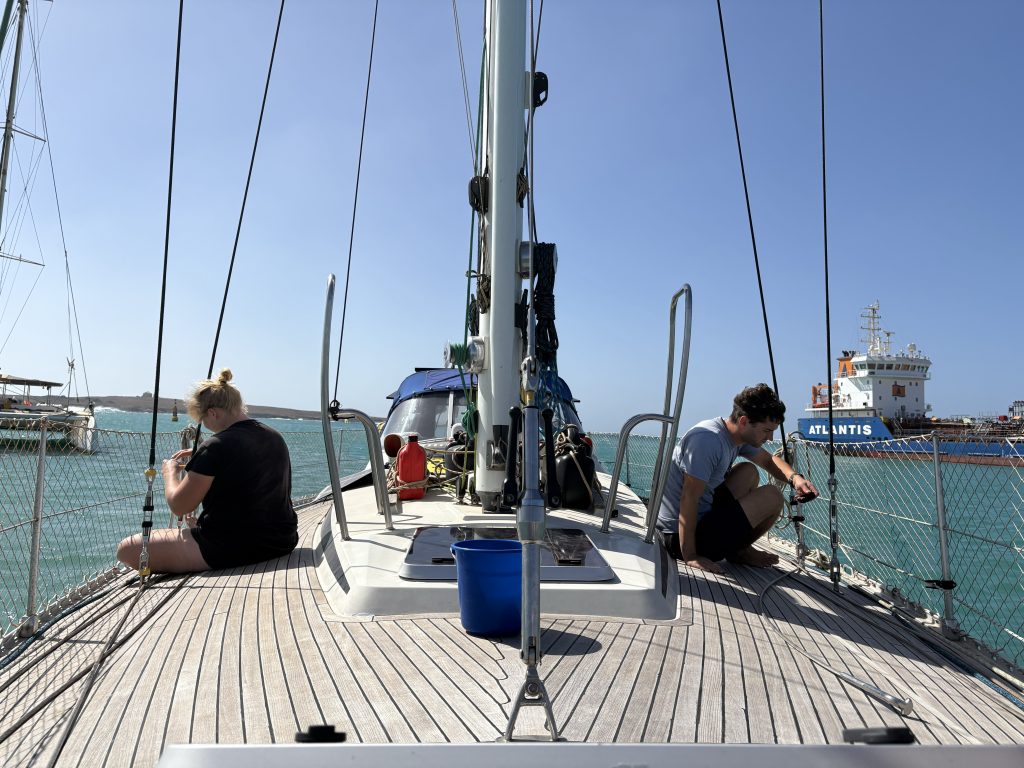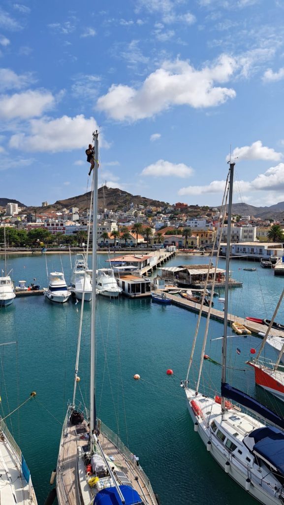 In Mindelo gab es eigentlich nur einen Boot/Reparatur Shop, doch der zögerte unsere Reparatur immer mehr hinaus und ließ uns tagelang warten, ohne dass etwas passierte. Das stellte unsere Geduld auf eine harte Probe. Aber uns war klar: wir sind hier in einem anderen Land, da laufen Dinge anders. „Cabo Verde – no stress“ heißt es wohl nicht ohne Grund an jeder Ecke. Wir vertrieben uns die Zeit mit anderen Bootsarbeiten.