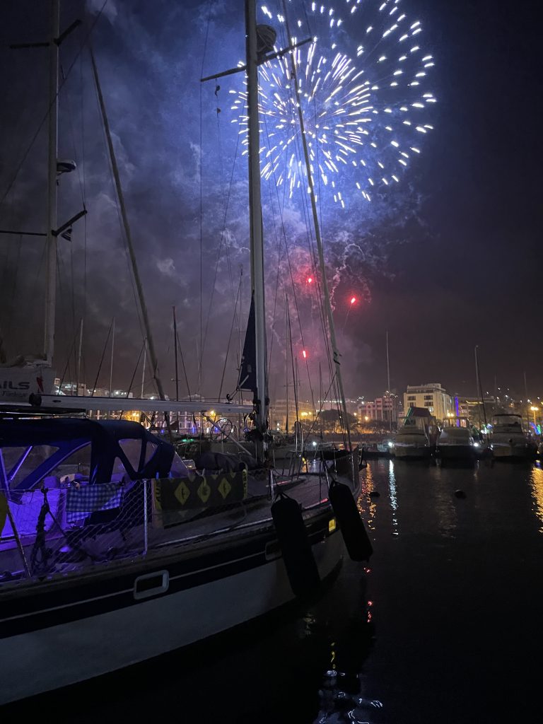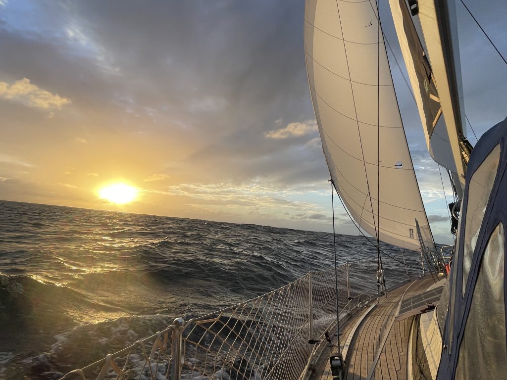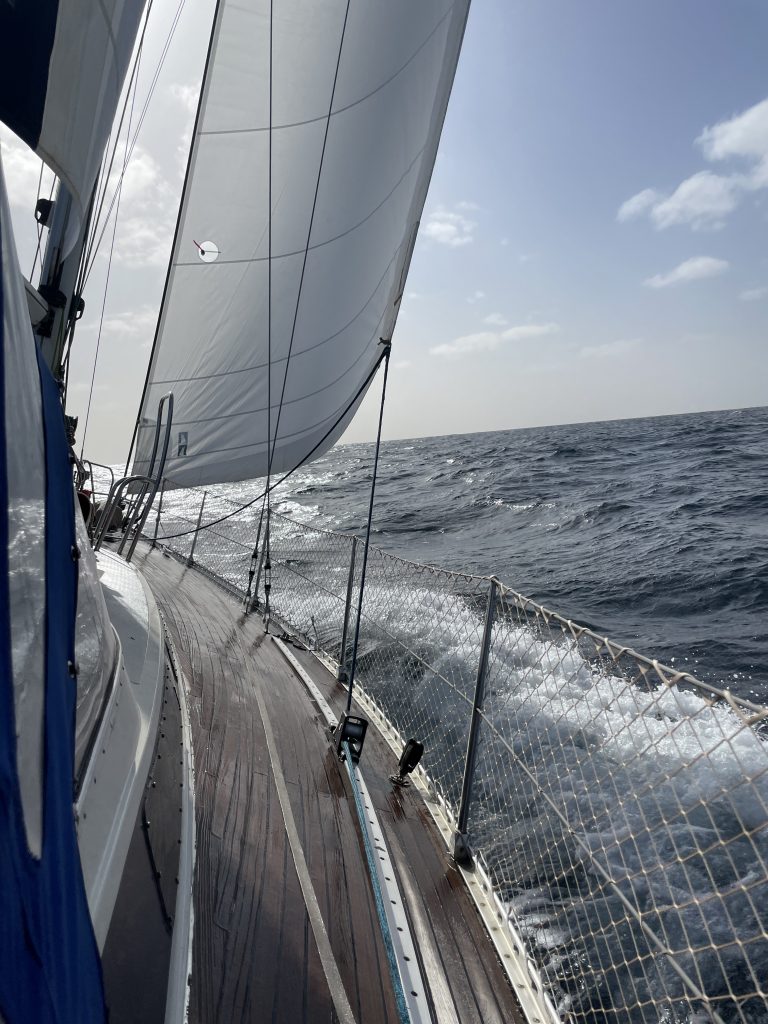 Als das Probesegeln auch erfolgreich war und segelten wir zurück nach Mindelo. Dort begann dann wieder eine eher nervenraubende Zeit. Vor Anker mit bis zu 35kn Wind und kaum Besserung in Sicht, schauten wir besorgt auf das Wetter auf dem Atlantik. Eigentlich hieß es immer „im Januar sind super Bedingungen – entspannter, konstanter Wind und eine angenehme Welle.“  Tja, dieses Jahr wohl nicht. Die Vorhersagen zeigen anhaltenden Starkwind bis über 30 Knoten und kurze Wellen teils über 4 Meter Höhe.