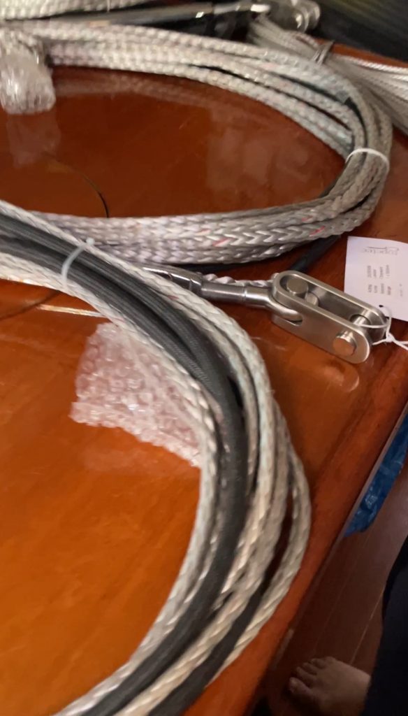 Nach umfangreicher Recherche entschieden wir, etwas für uns ganz neues auszuprobieren. Wir warteten die Weihnachtstage ab und sprachen mit Ropetec in Bremen, einer Firma, die Wanten und Stage aus Dyneema, einem extrem starken Tauwerk, herstellt. Sie sollten unsere neuen Wanten und ein neues Achterstag herstellen.