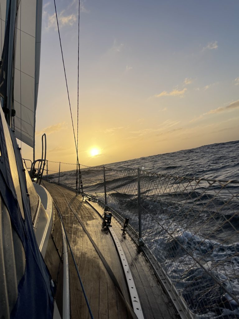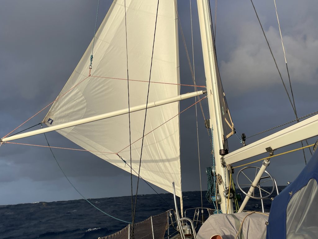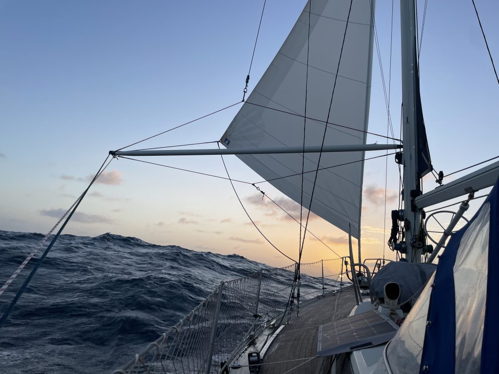 Das Gute: Es war auch nur wenig Aktivität notwendig. Die Genua stand gut am Spibaum und wurde nur – je nach Wind – etwas ein oder ausgerollt. Der Autopilot meisterte die Wellen bravourös und so mussten wir nur essen, schlafen und aufpassen. Es lief also eigentlich ganz gut.