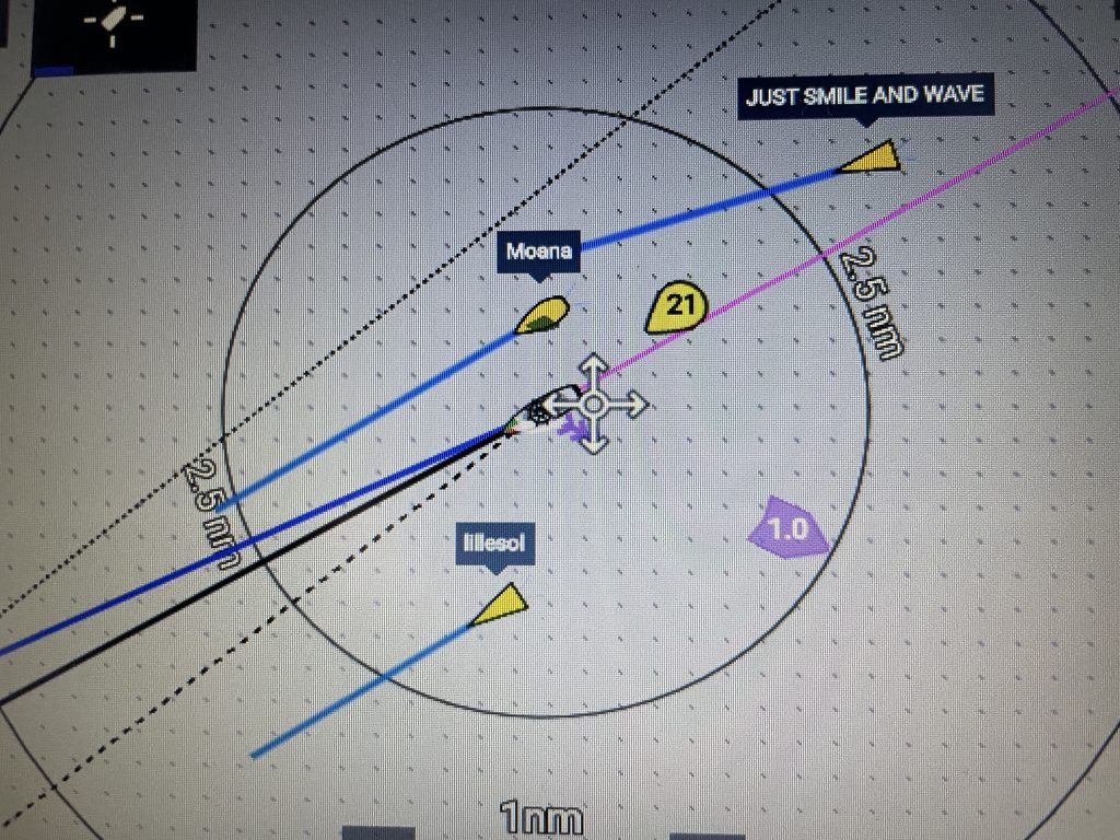 Schon nach den ersten Meilen trennten sich die Boote. Wo an Land noch die klare Absicht war, zusammen zu bleiben, schien diese wie vom Wind verweht, sobald die Segel gesetzt waren. Nur 3 Boote blieben in unserer Nähe. Und diese sollten die nächsten Tage/Wochen unsere treue Begleitung werden. Wir sprachen täglich über Funk und Whatsapp, versuchten die Kurse und Segelfläche so anzupassen, dass wir nah beieinander blieben.