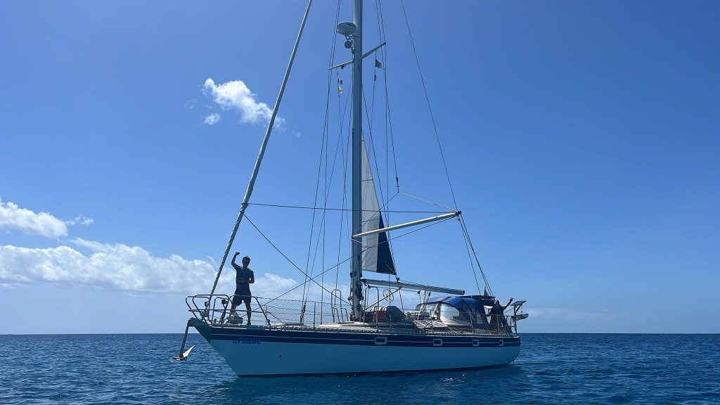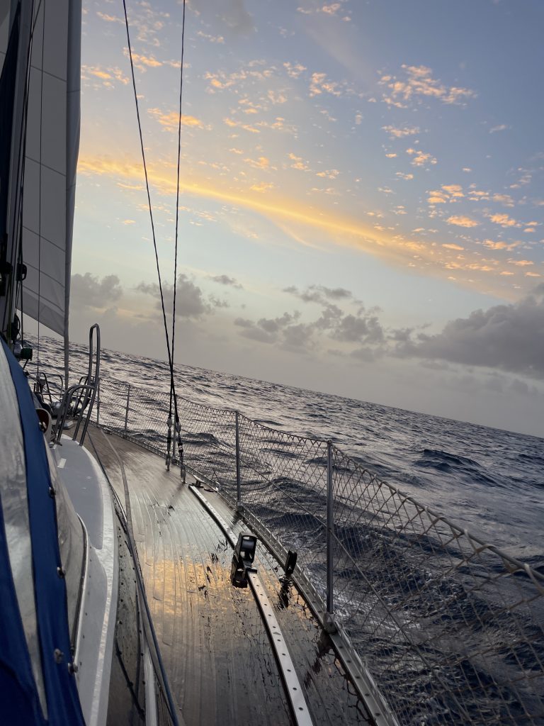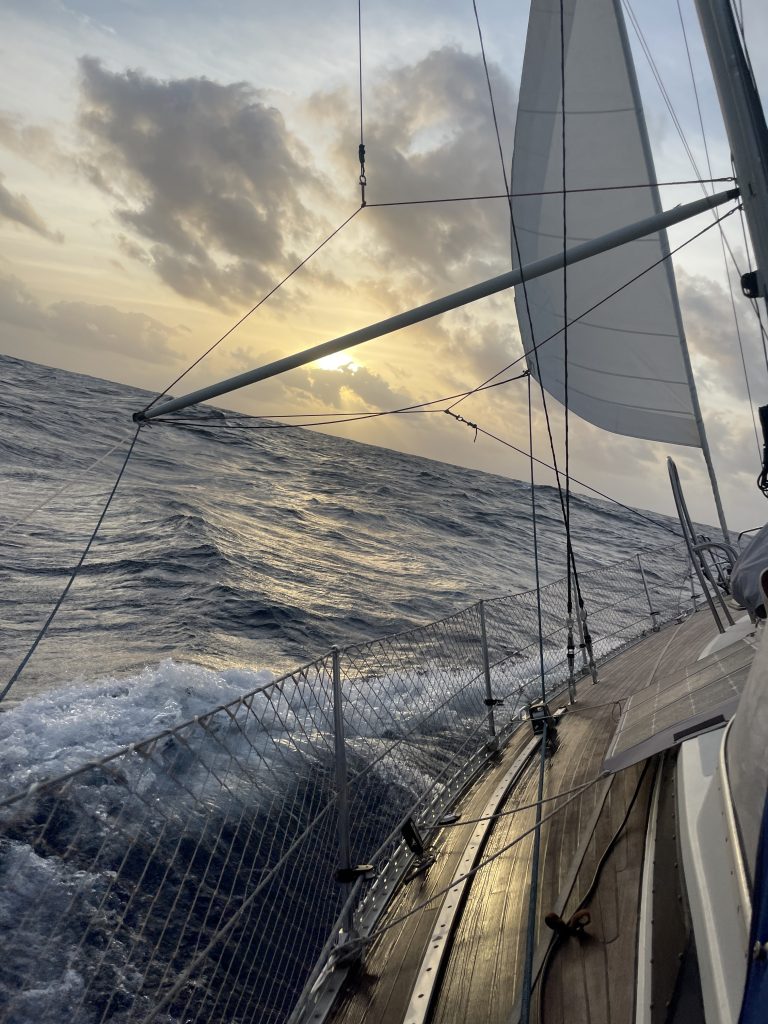 Also haben wir mit anderen Segler:innen in Mindelo gesprochen, uns beraten lassen und dann einfach den Sprung ins kalte Wasser gewagt. Wir nutzen nach einigen Wochen unruhiger See mit viel Wind und Welle die erste etwas ruhigere Phase. Also lösten wir am 4. Februar die Leinen und machten uns mit einigen anderen Booten zusammen auf den Weg Richtung Karibik.